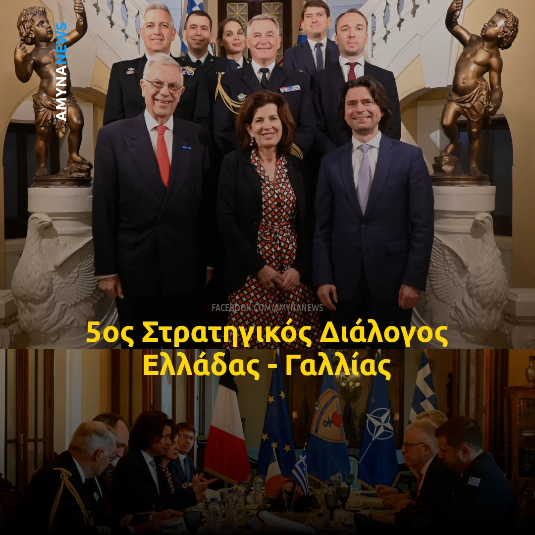 Ο Γενικός Διευθυντής της Γενικής Διεύθυνσης Πολιτικής Εθνικής Άμυνας και Διεθνών Σχέσεων (ΓΔΠΕΑΔΣ) του Υπουργείου Εθνικής Άμυνας, Πρέσβυς ε.τ. Μιχαήλ Σπινέλλης, πραγματοποίησε διμερείς διαβουλεύσεις με τον Γενικό Διευθυντή Διεθνών Σχέσεων και Στρατηγικής του Υπουργείου Άμυνας της Γαλλίας, Guillaume Ollagnier, στο πλαίσιο του 5ου Στρατηγικού Διαλόγου Ελλάδας – Γαλλίας (8/4/26).