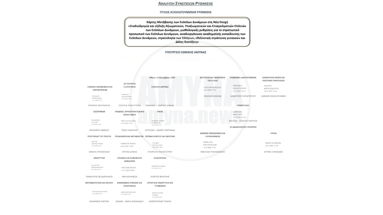 Το νομοσχέδιο ΥΠΕΘΑ, με τις υπογραφές των Υπουργών, που θα κατατεθεί στη Βουλή