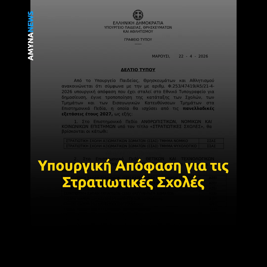 Με την εν λόγω Υπουργική Απόφαση, η οποία θα ισχύσει από τις Πανελλαδικές Εξετάσεις 2027: