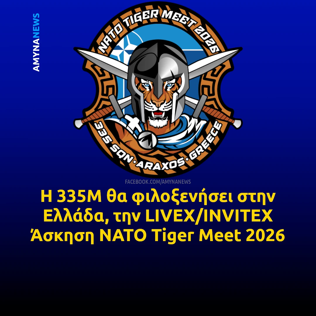 Η LIVEX/INVITEX Άσκηση NATO Tiger Meet 2026 θα διεξαχθεί στην Ελλάδα από τη Δευτέρα 4 έως την Πέμπτη 14 Μαΐου 2026.