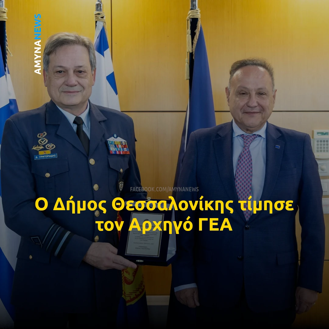 Ο Δήμαρχος Θεσσαλονίκης Στέλιος Αγγελούδης απένειμε τιμητική πλακέτα στον Αρχηγό του Γενικού Επιτελείου Αεροπορίας (ΓΕΑ), Αντιπτέραρχο (I) Δημοσθένη Γρηγοριάδη