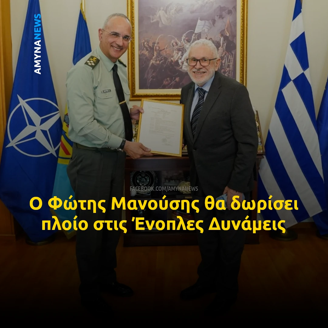 Ο εφοπλιστής Μανούσης εξέφρασε την πρόθεσή του να δωρίσει πλοίο της οικογένειάς του στις Ένοπλες Δυνάμεις.